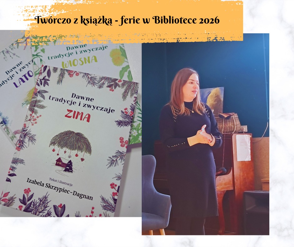 Ferie w Bibliotece to także spotkanie z pisarką, Izabelą Skrzypiec-Dagnan, autorką cyklu książek „Dawne tradycje i zwyczaje”. W tej serii ukazały się już trzy, czyli „Wiosna”, „Lato” oraz „Zima”.
